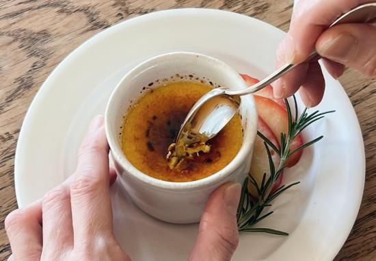 いちじくタルトの時に好評だったれんこんの米粉マフィンも焼いて、デザートは濃厚クレームブリュレです。